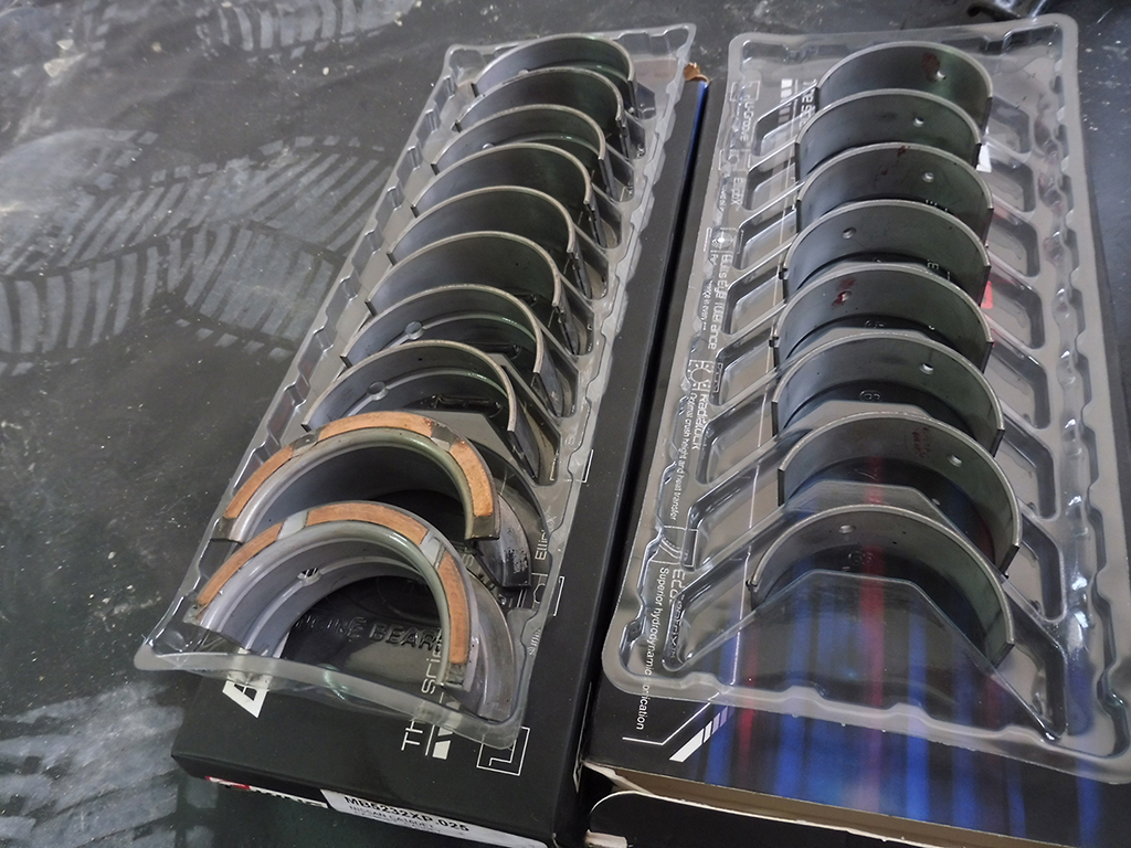 Hlavní i ojniční ložiska velikosti STD na bezbrusovou kliku v krabičkách od King Racing, jelikož jsem původní krabičky vyhodil.