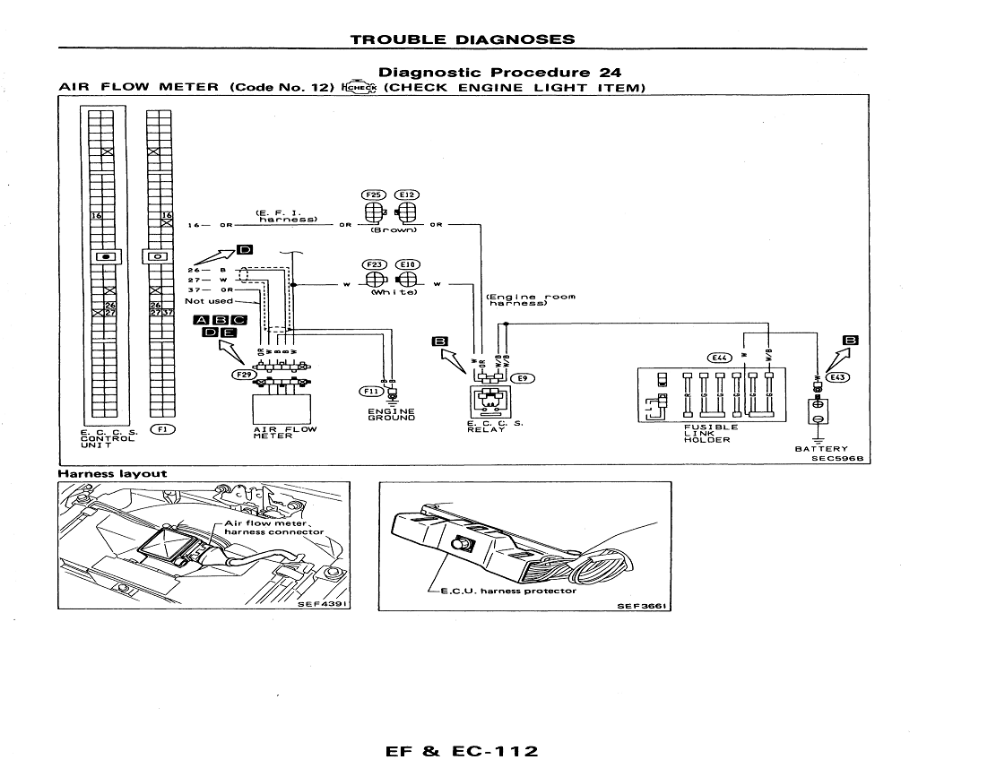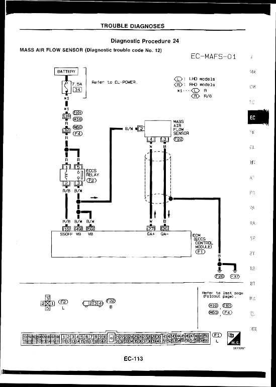 Hore je S14, tri vodice, zlava doprava: 2/B ciernobiela - napajanie 3/C cierna - zem pre AFM z ECU 4/D biela - signal do ECU Dole Z32, 5 vodicov, zlava doprava: 1/A oranzova - nepouziva sa 2/B biela - signal do ECU 3/C cierna - ukostrenie na motor 4/D cierna - zem pre AFM z ECU 5/E biela - napajanie ...