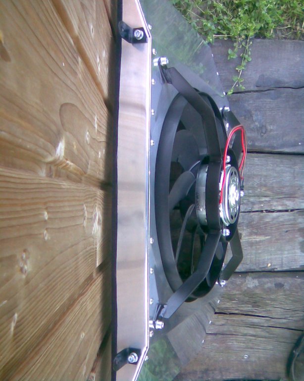Termostat mám 82°C a termospínač jednostupňový zap 87°C vyp 82°C v horní hadici, vrtule 355mm 350W v al. sahaře vlastní konstrukce, al. chladič 50mm a řekl bych, že více už netřeba, experimentoval jsem s motorem 450w otáčky odhaduju okolo 3500 a 360mm vrtulí původně určenou pro visco spojku z passata a to jsem měl dojem, že to už to auto utáhne samo i bez cačka, bohužel problém byl v tom, že se mi celkem hřály spoje/fastony a relé, taky to bylo už celkem velké/nemotorné a hlavně se mi to nepodařilo dokonale vyvážit, takže to trochu vibrovalo, ale když to seplo a člověk stál za autem, tak mu vlály nohavice