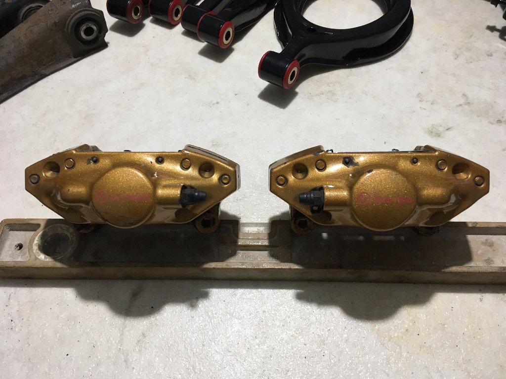 nabízím k prodeji zadní brzdové třmeny Brembo z vozu Subaru Impreza STi. Třmeny jsou použitelné i na S-chassis, rozteč děr pro uchycení je shodná, stačí jen vyřešit kotouč.